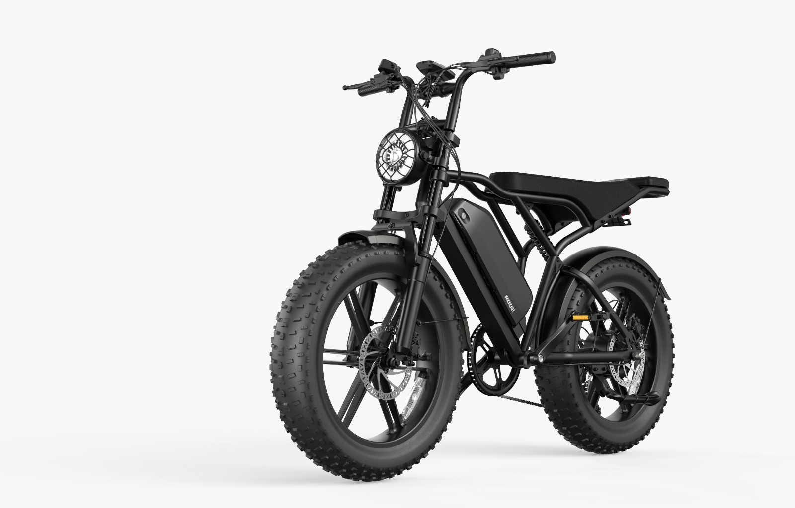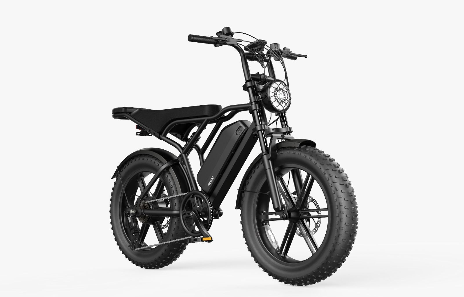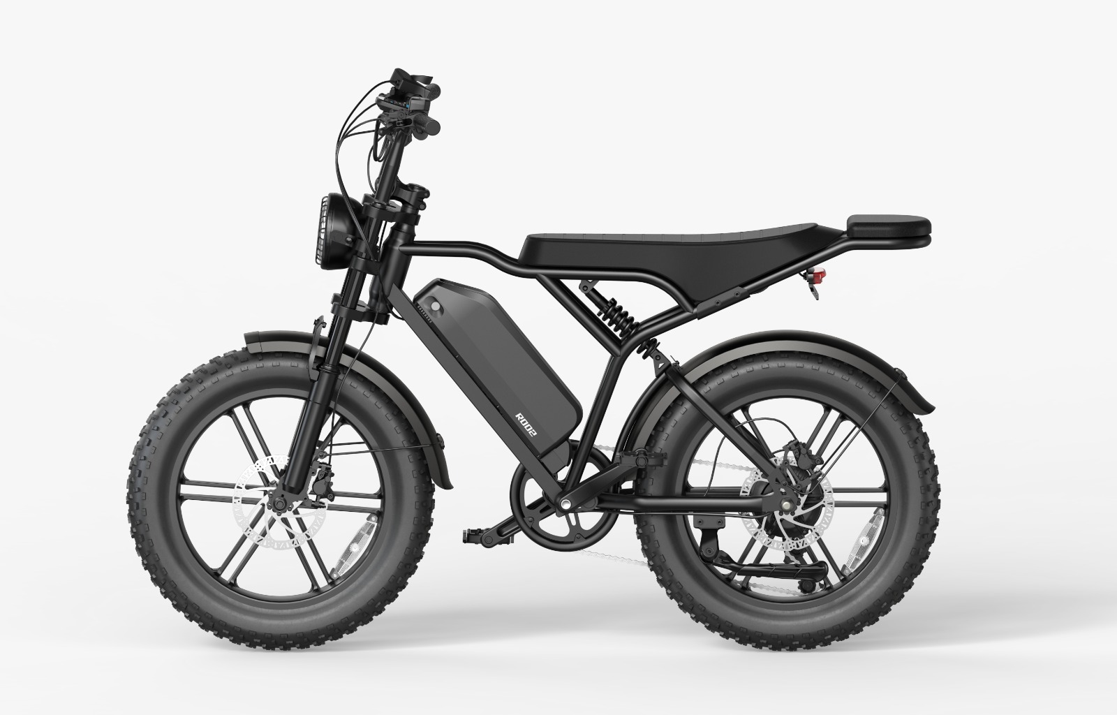 Les pneus épais 20 pouces assurent une adhérence exceptionnelle sur tous types de terrains : route, gravier, sable ou sentiers de montagne.